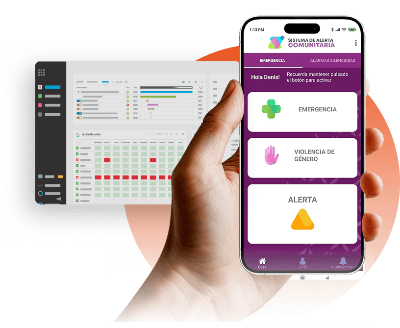 Los centros de monitoreo reciben tu ubicación exacta en tiempo real, eliminando demoras y pasos innecesarios para una actuación inmediata. Este sistema de redes asegura una comunicación efectiva y nos permite ofrecerte una respuesta inicial en menos de 30 segundos, brindando una mayor seguridad y confianza a toda la comunidad.
